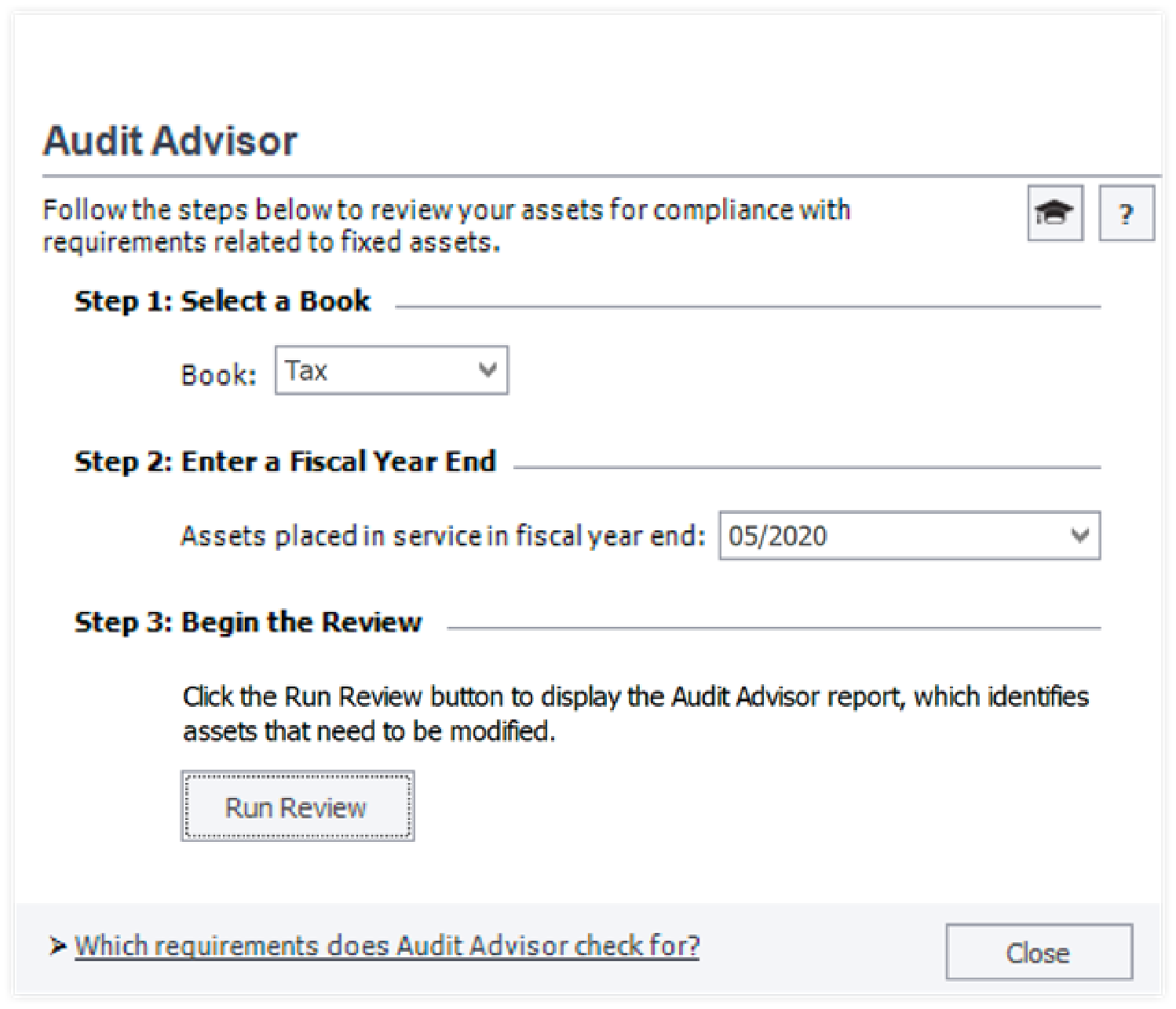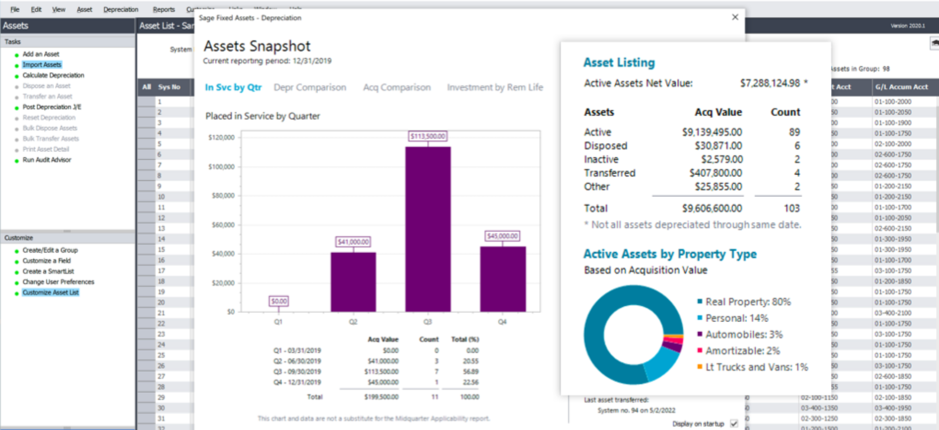 Stay compliant with IRS regulations and automated annual federal tax compliance updates. The Depreciation module of Sage Fixed assets includes built-in tax forms and worksheets including 3468, 4255, 4562, 4626, and 4797.